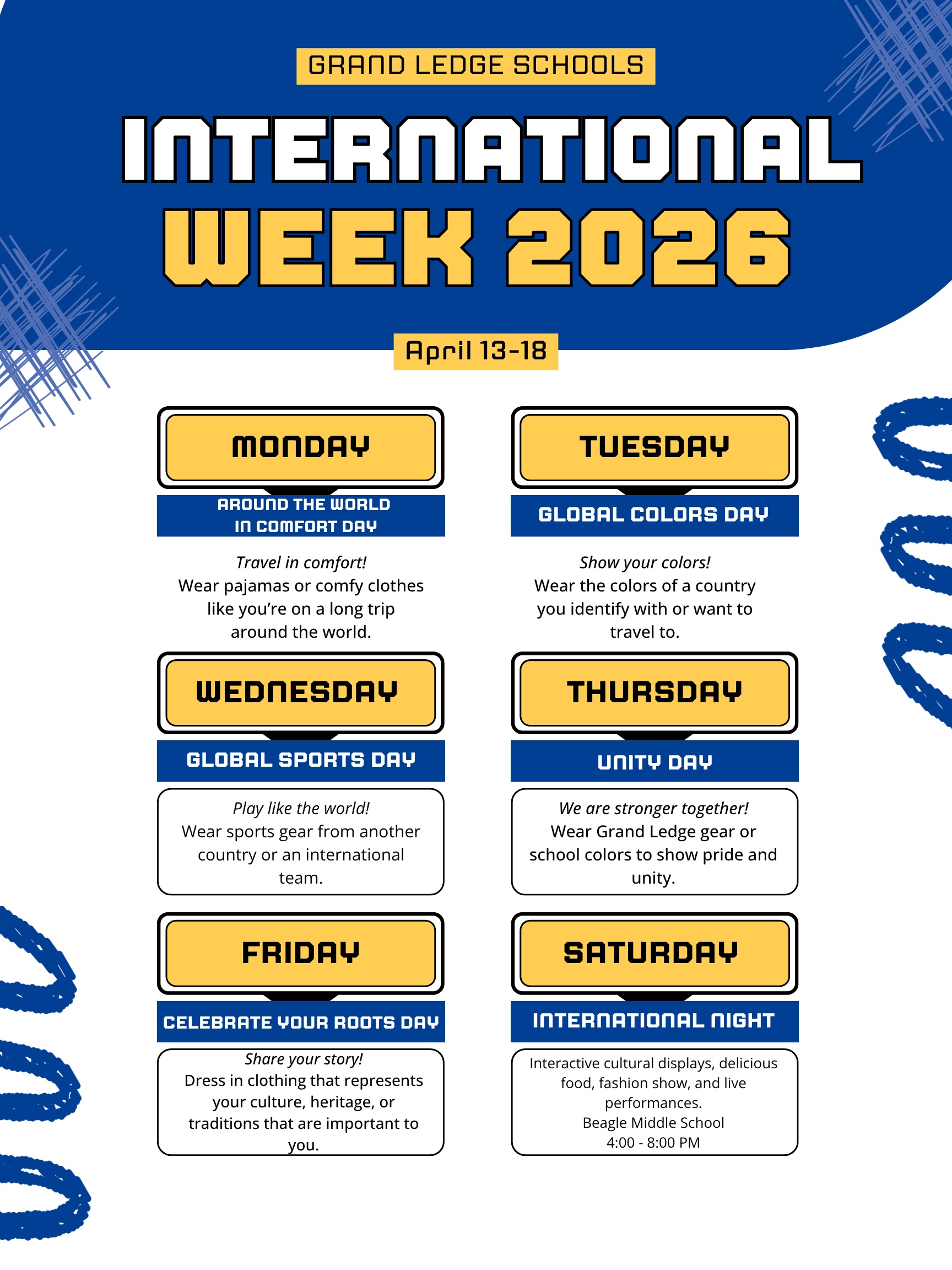 Blessings in a Backpack If your student needs additional food at home, the Grand LedgeBlessings in a Backpack program is here. For over a decade, this program has provided bags of food for weekend meals at no cost to hundreds of students in the Grand Ledge area. For students attending school in-person, a bag of nourishing, kid-friendly food will be placed discretely in their backpack or locker at the end of each week during the school year (except during school breaks.) Examples of some of the food items distributed are: macaroni and cheese, canned vegetables, soup, oatmeal, granola bars, fruit cups, and beef ravioli. If you would like your student to participate in the program, please fill out the permission form that went home or request one from the office. Return the form to the school office by Wednesday, September 11th, for your student to receive the first bag on September 19th.