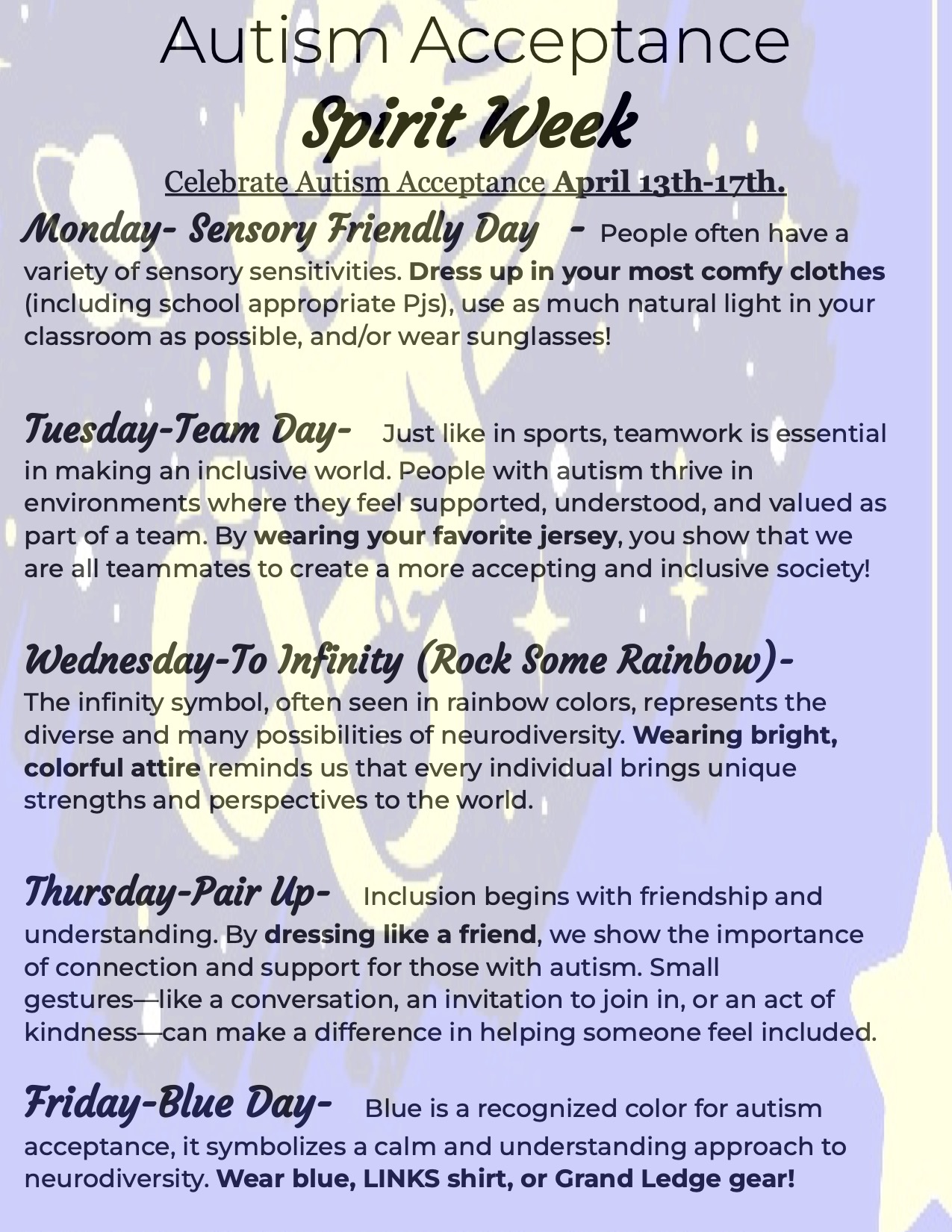 Please note that students do not have access to a microwave for lunch.